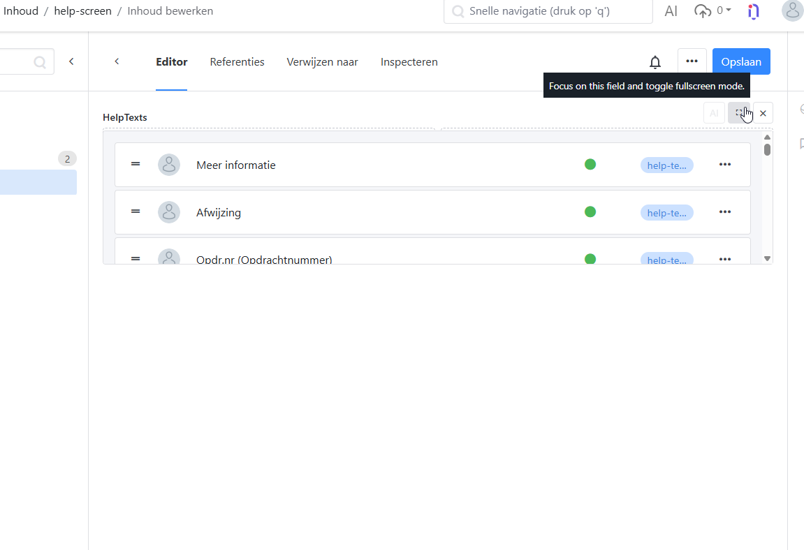 Within a content item, select full-screen mode of a fielddisplay.